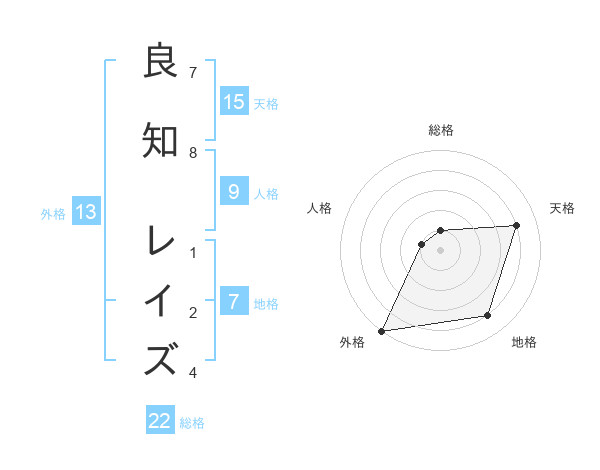 良知 レイズさんの外格は13画の5点!