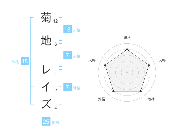 菊地 レイズさんの総格は25画の4点!