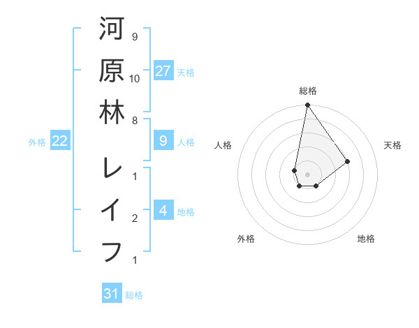 河原林 レイフさんの総格は31画の5点!