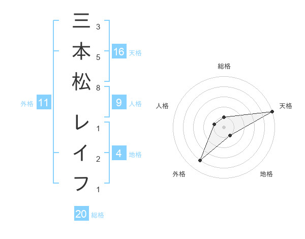 三本松 レイフさんを姓名の画数から五運を鑑定