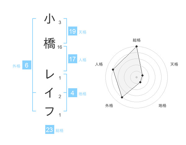 小橋 レイフさんを姓名の画数から五運を鑑定
