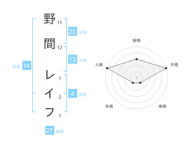 野間 レイフさんの外格は14画の1点!