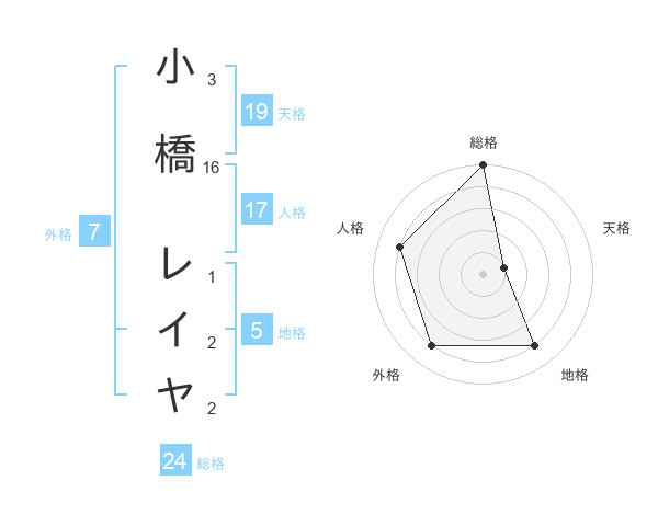 小橋 レイヤさんを姓名の画数から五運を鑑定