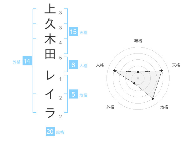 上久木田 レイラさんの総格は20画の1点!