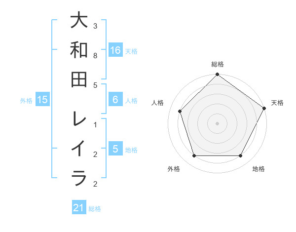 大和田 レイラさんを姓名の画数から五運を鑑定