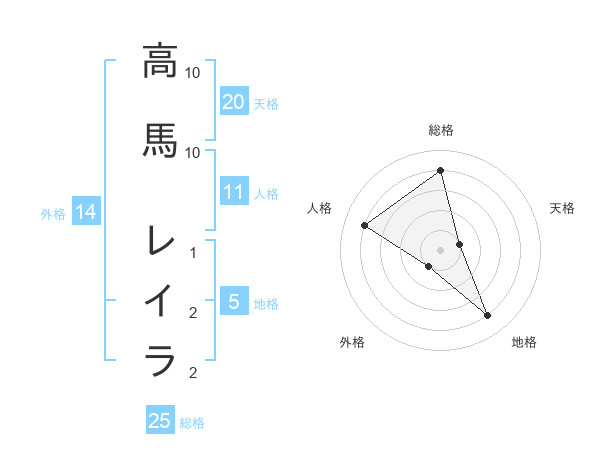 高馬 レイラさんを姓名の画数から五運を鑑定
