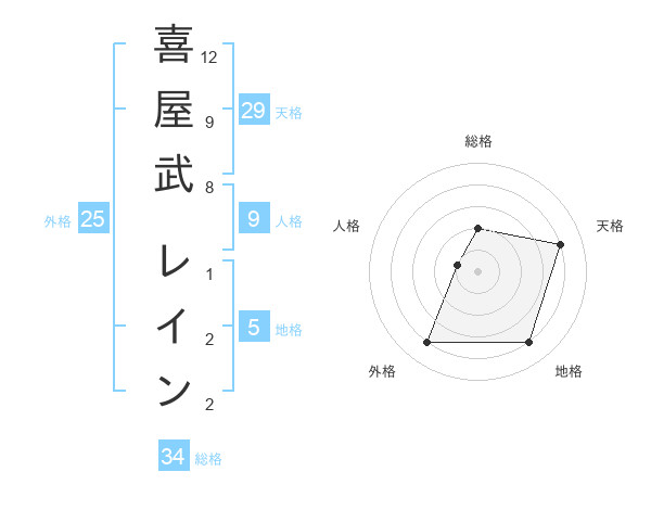 喜屋武 レインさんを姓名の画数から五運を鑑定