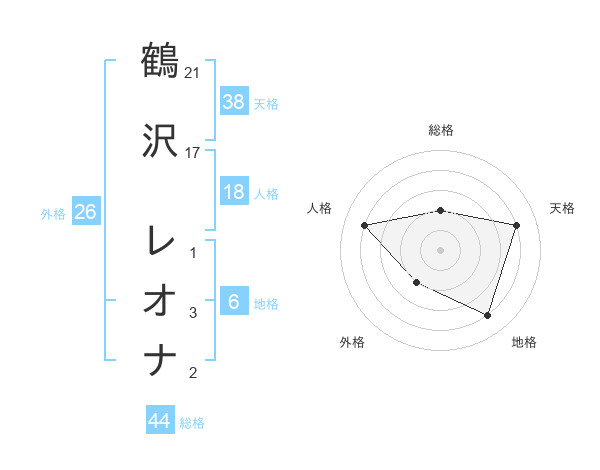 鶴沢 レオナさんの総格は44画の2点!
