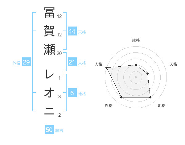 冨賀瀬 レオニさんを姓名の画数から五運を鑑定