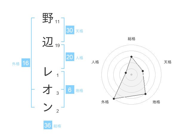 野辺 レオンさんの外格は16画の5点!
