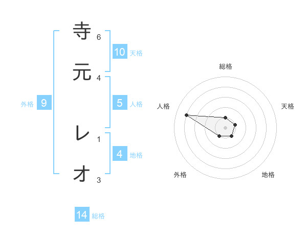寺元 レオさんの総格は14画の1点!