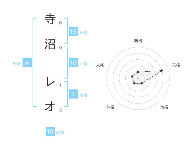 寺沼 レオさんの天格は15画の4点!
