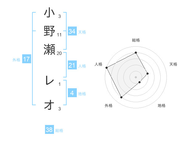 小野瀬 レオさんを姓名の画数から五運を鑑定