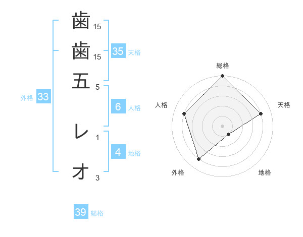 歯歯五 レオさんを姓名の画数から五運を鑑定