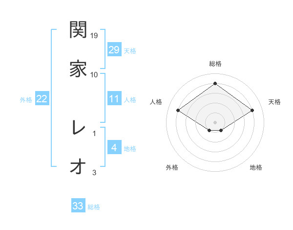 関家 レオさんの総格は33画の4点!