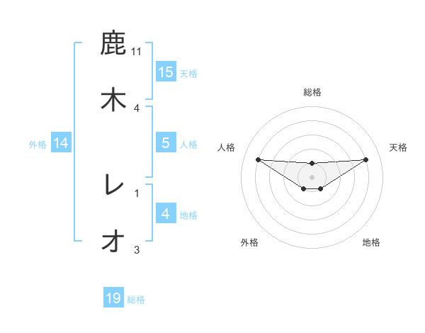 鹿木 レオさんを姓名の画数から五運を鑑定