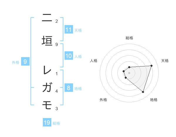 二垣 レガモさんの地格は8画の4点!