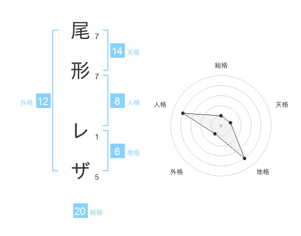 尾形 レザさんの総格は20画の1点!