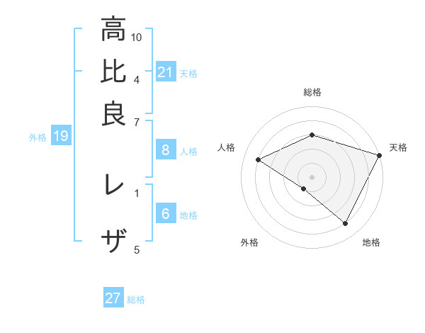 高比良 レザさんの天格は21画の5点!