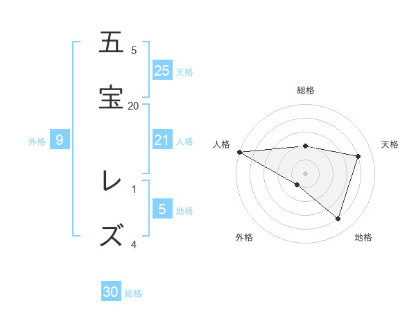五宝 レズさんの総格は30画の2点!