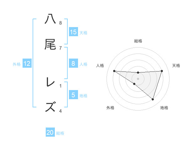 八尾 レズさんの総格は20画の1点!