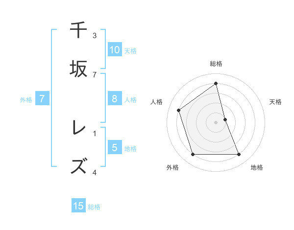 千坂 レズさんの地格は5画の4点!
