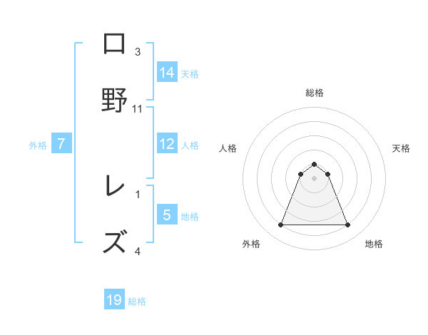 口野 レズさんの総格は19画の1点!