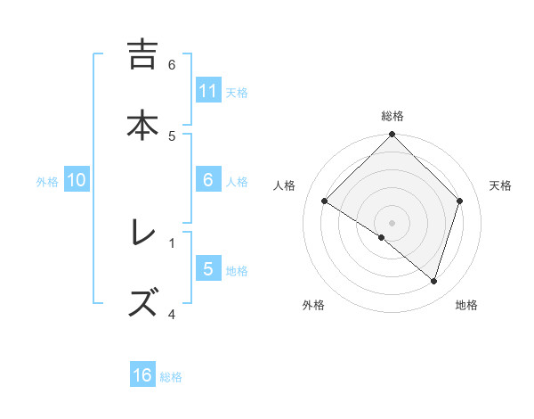 吉本 レズさんの総格は16画の5点!