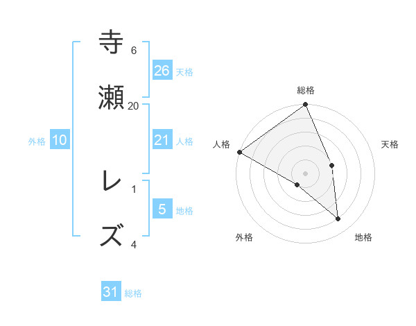 寺瀬 レズさんの総格は31画の5点!