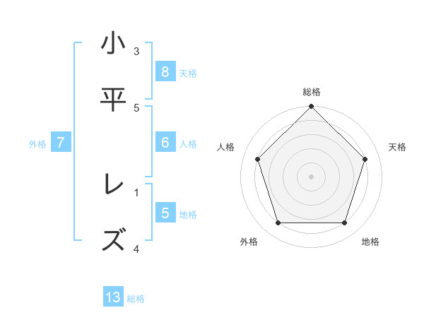 小平 レズさんの総格は13画の5点!
