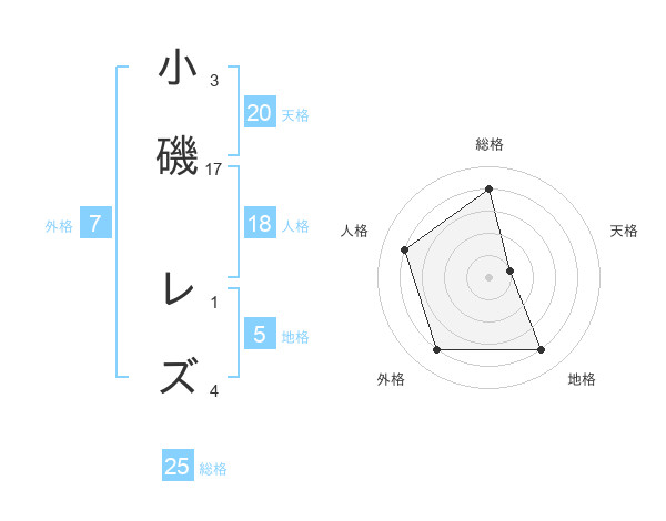 小磯 レズさんの総格は25画の4点!