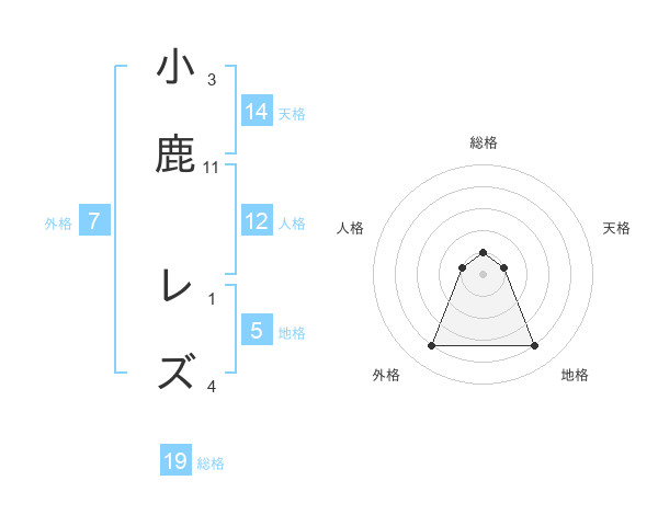 小鹿 レズさんの地格は5画の4点!