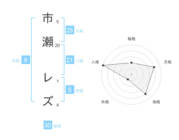 市瀬 レズさんの総格は30画の2点!