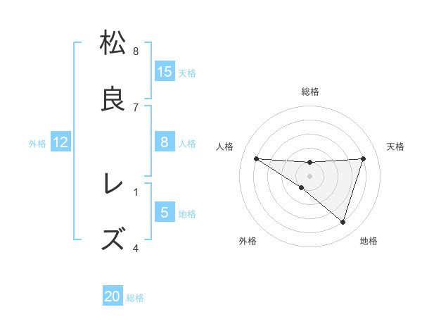 松良 レズさんの天格は15画の4点!