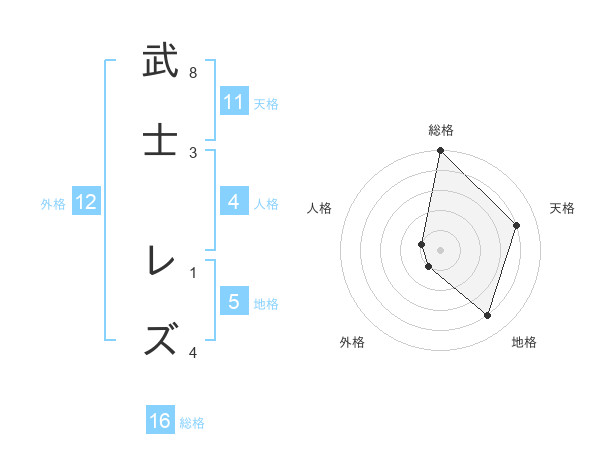 武士 レズさんの総格は16画の5点!