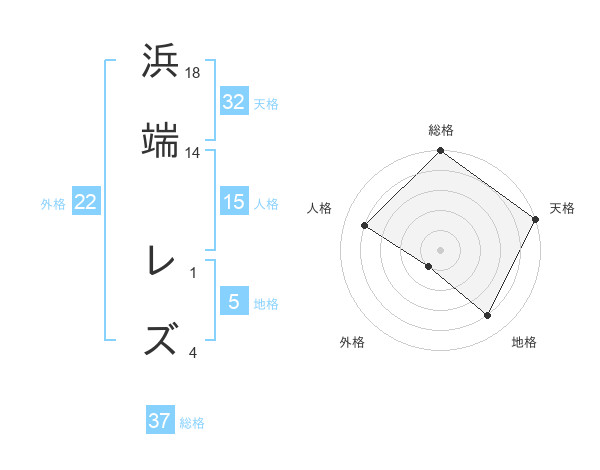 浜端 レズさんの総格は37画の5点!