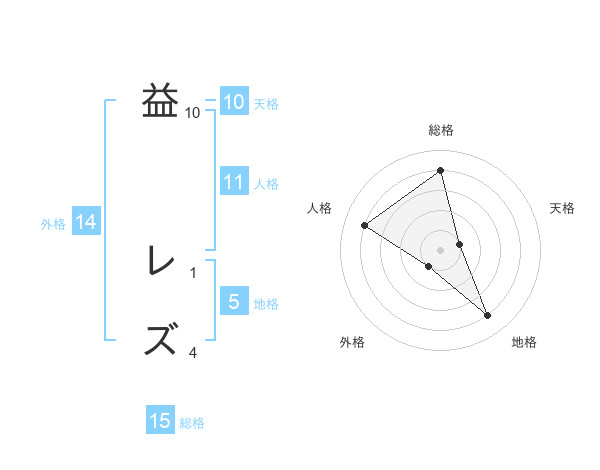 益 レズさんの総格は15画の4点!