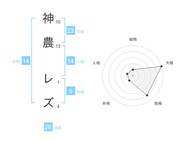 神農 レズさんの天格は23画の5点!