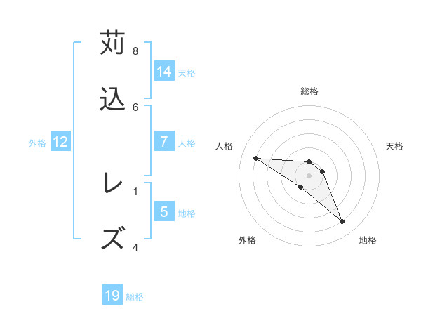 苅込 レズさんの地格は5画の4点!