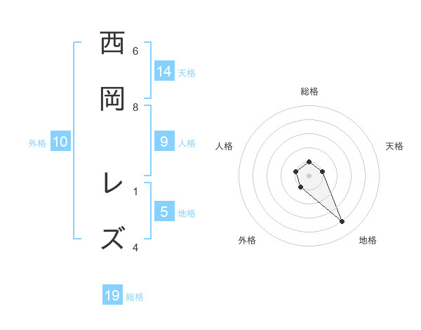 西岡 レズさんの総格は19画の1点!
