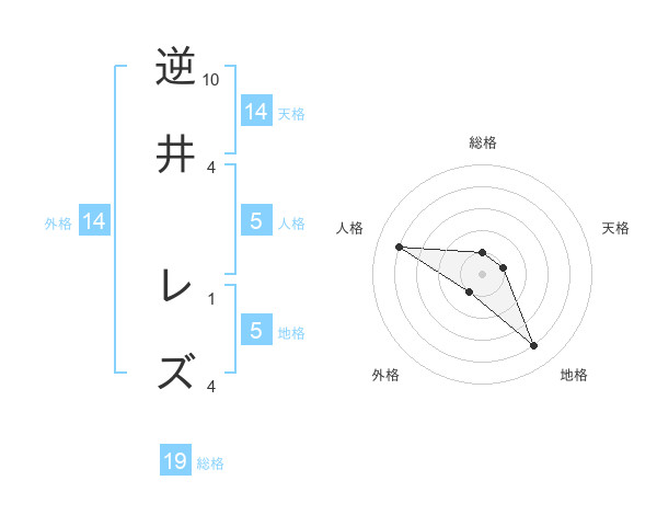 逆井 レズさんの地格は5画の4点!