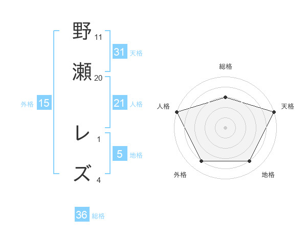 野瀬 レズさんの天格は31画の5点!