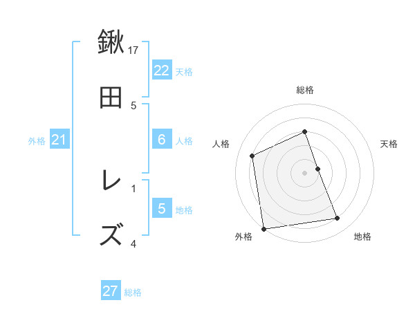 鍬田 レズさんを姓名の画数から五運を鑑定