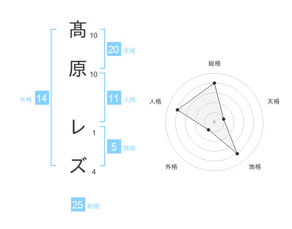 髙原 レズさんの総格は25画の4点!