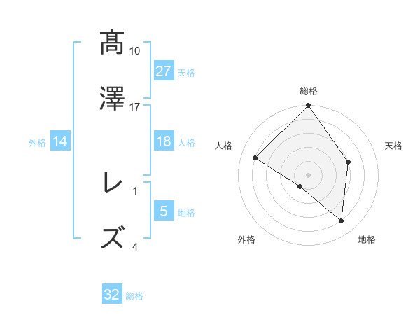 髙澤 レズさんの総格は32画の5点!