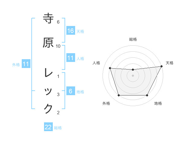寺原 レックさんの天格は16画の5点!