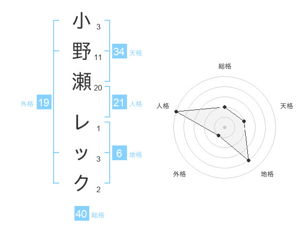 小野瀬 レックさんを姓名の画数から五運を鑑定