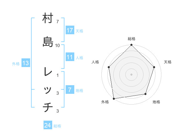 村島 レッチさんの外格は13画の5点!