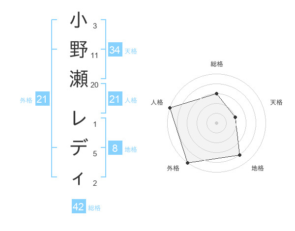 小野瀬 レディさんを姓名の画数から五運を鑑定