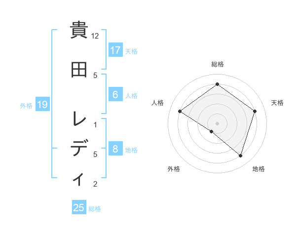 貴田 レディさんの天格は17画の4点!